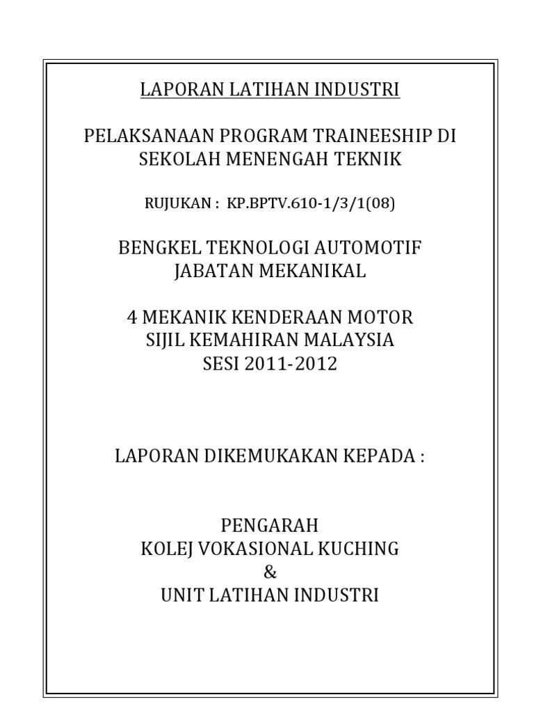 Buku laporan harian latihan industri (sekiranya pelajar dibenarkan bercuti oleh organisasi berkenaan); laporan harian latihan industri. Contoh laporan akhir latihan industri kolej komuniti malaycaxa.